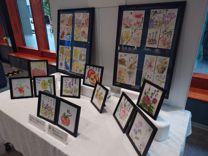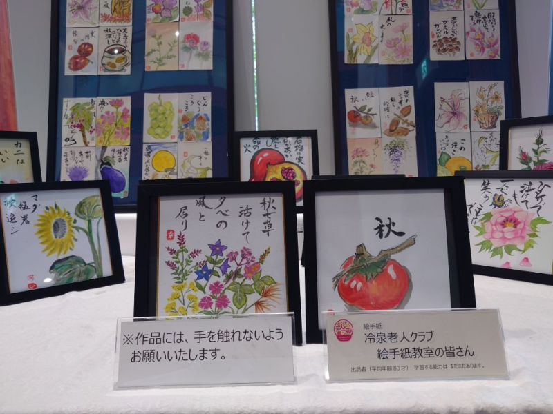 10月は、冷泉老人クラブ絵手紙教室の皆さんの「絵手紙」と「敷紙」の作品を展示しました。
