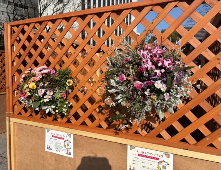春の花々が織りなす華やかなデザインは、通りすがりの人々の心を和ませ、街の景観に温かみを添え、