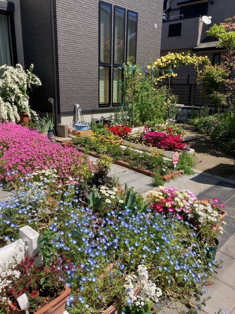 皆さんが、お仕事やお出かけ、散歩等に行かれたり、帰宅されたりする時、我家の庭の花を見てほっこりされるガーデニングを目指しています。